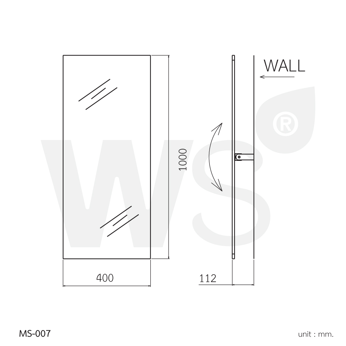 กระจกเงาปรับองศาได้ ไม่มีกรอบ ขนาด 40×100 ซม. รุ่น MS-007