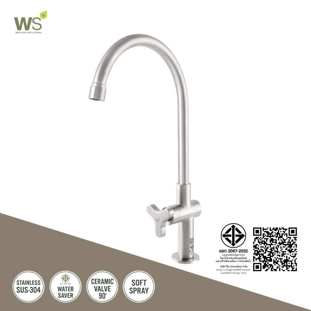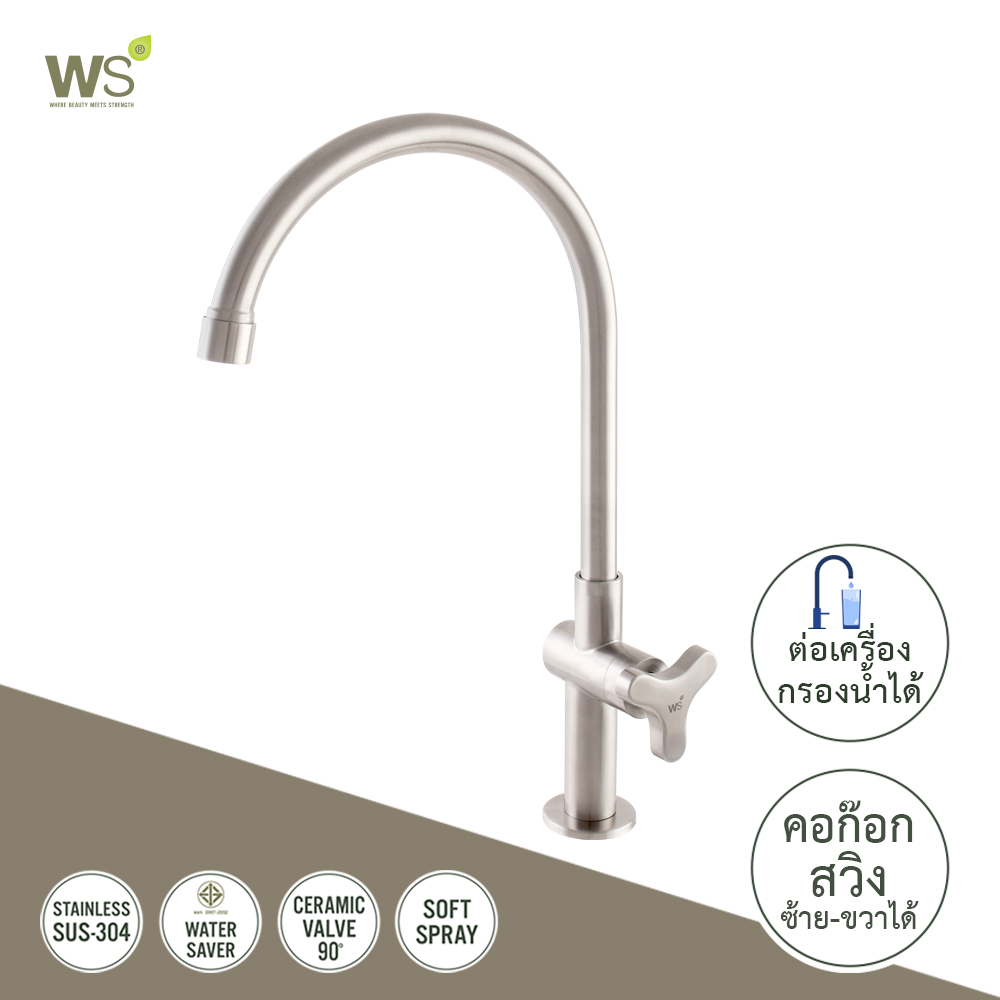 ก๊อกน้ำสแตนเลส ก๊อกซิงค์ ก๊อกอ่างล้างจาน แบบตั้งพื้น รุ่นทรีโอ้ (TRIO) WS-0831J