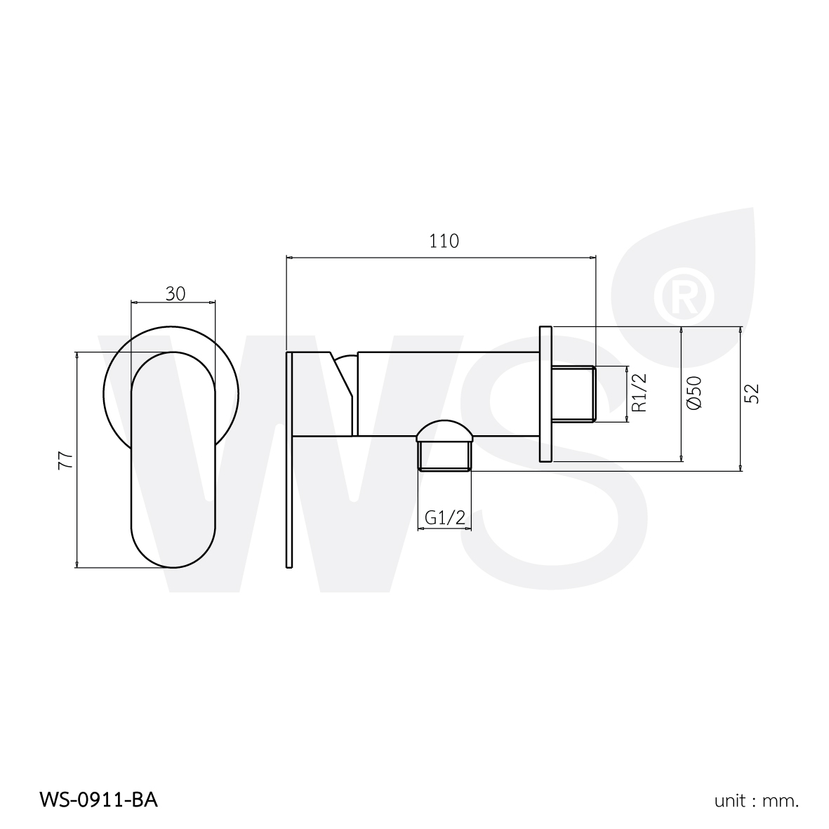 • วาล์วเดี่ยวฝักบัวสแตนเลส สีดำ (Matte Black) รุ่น WS-0911-BA