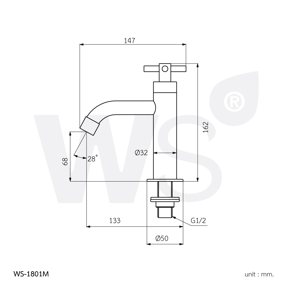 ก๊อกน้ำสแตนเลส ก๊อกอ่างล้างหน้าเดี่ยว รุ่นพลัส (PLUS) WS-1801M