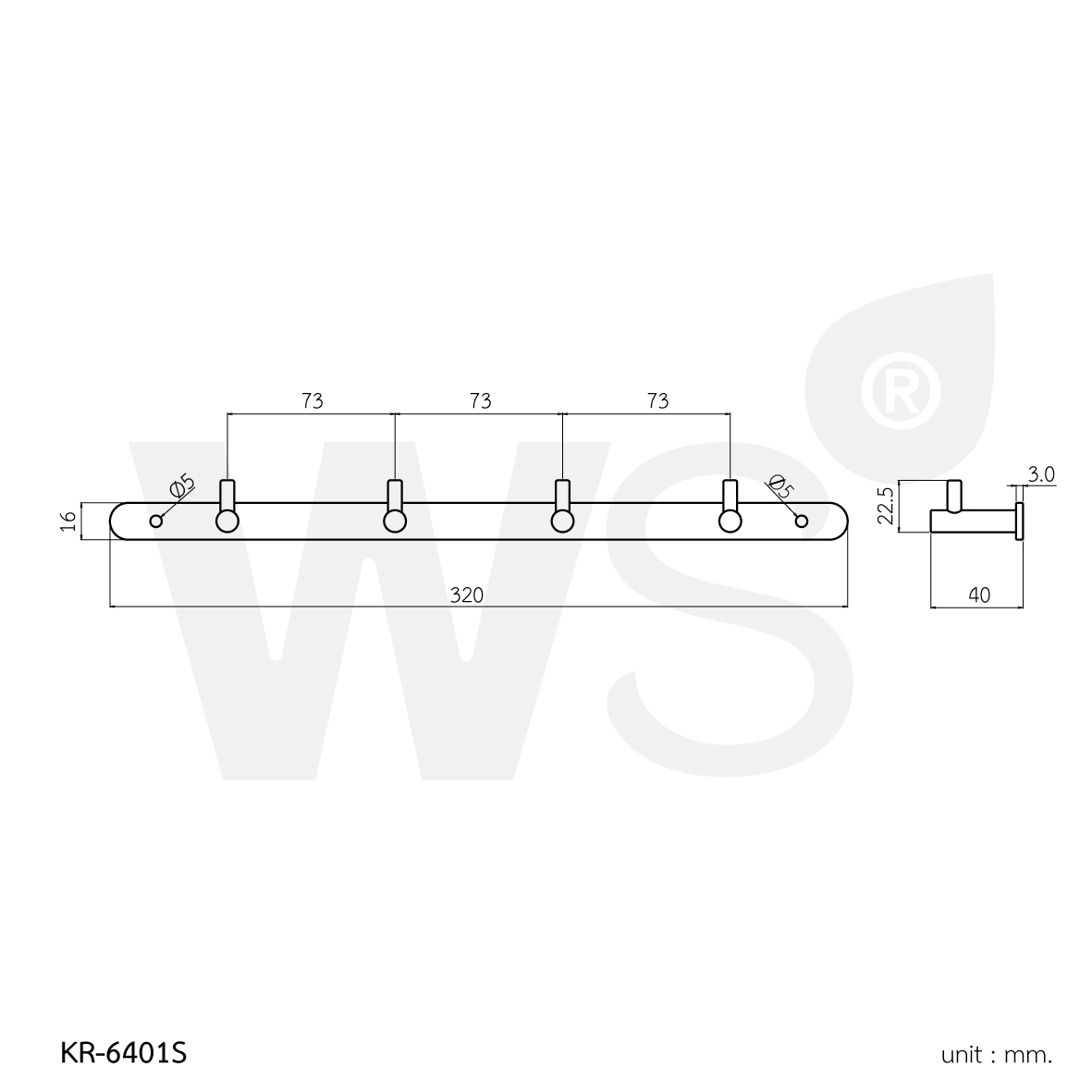 ขอแขวนผ้าสแตนเลส 4 ตะขอ รุ่นคอร์ร่า KR-6401S