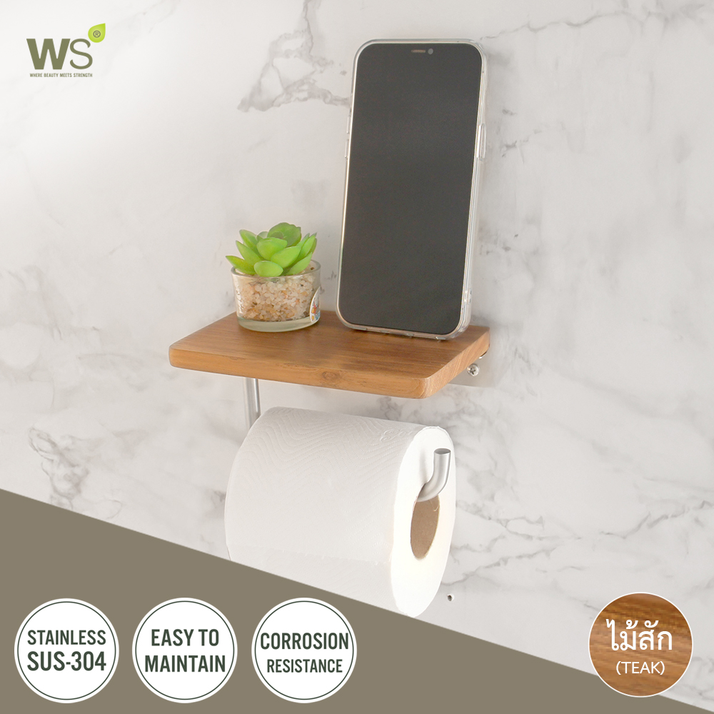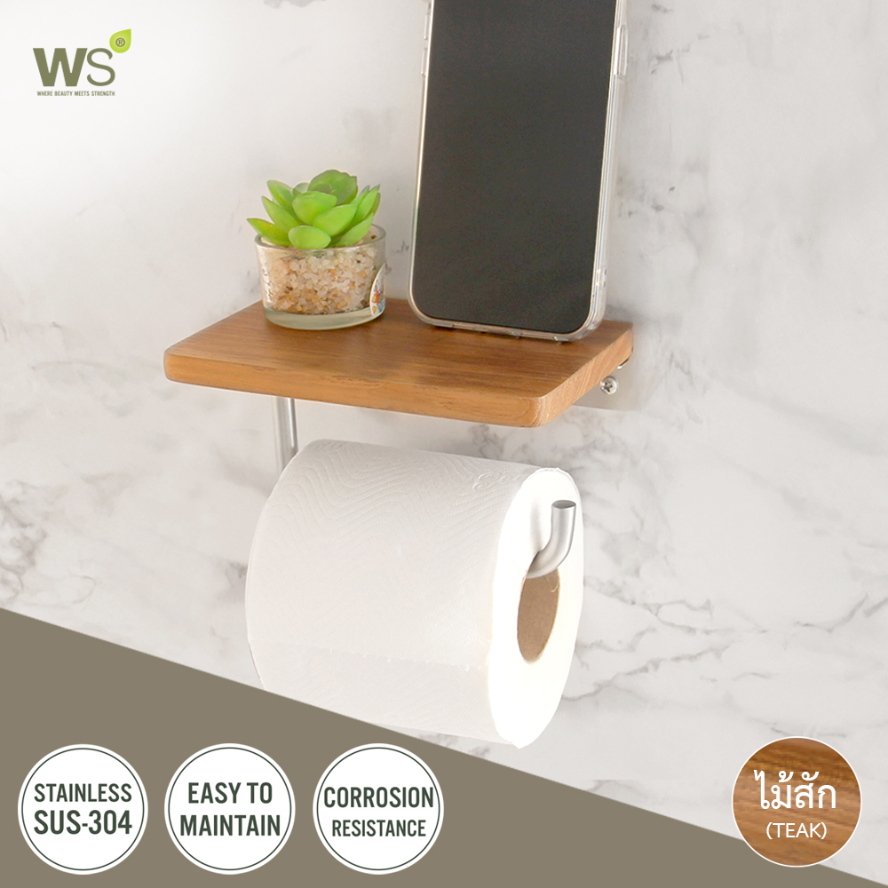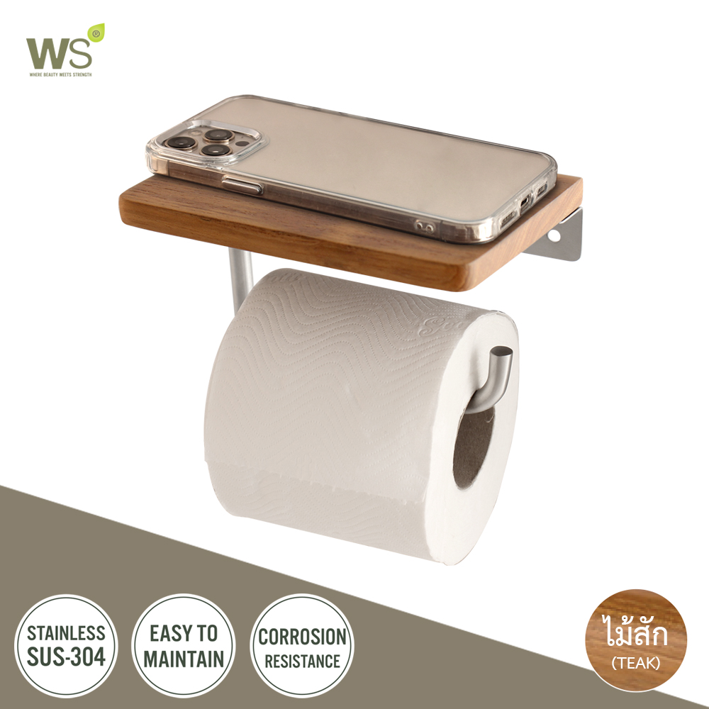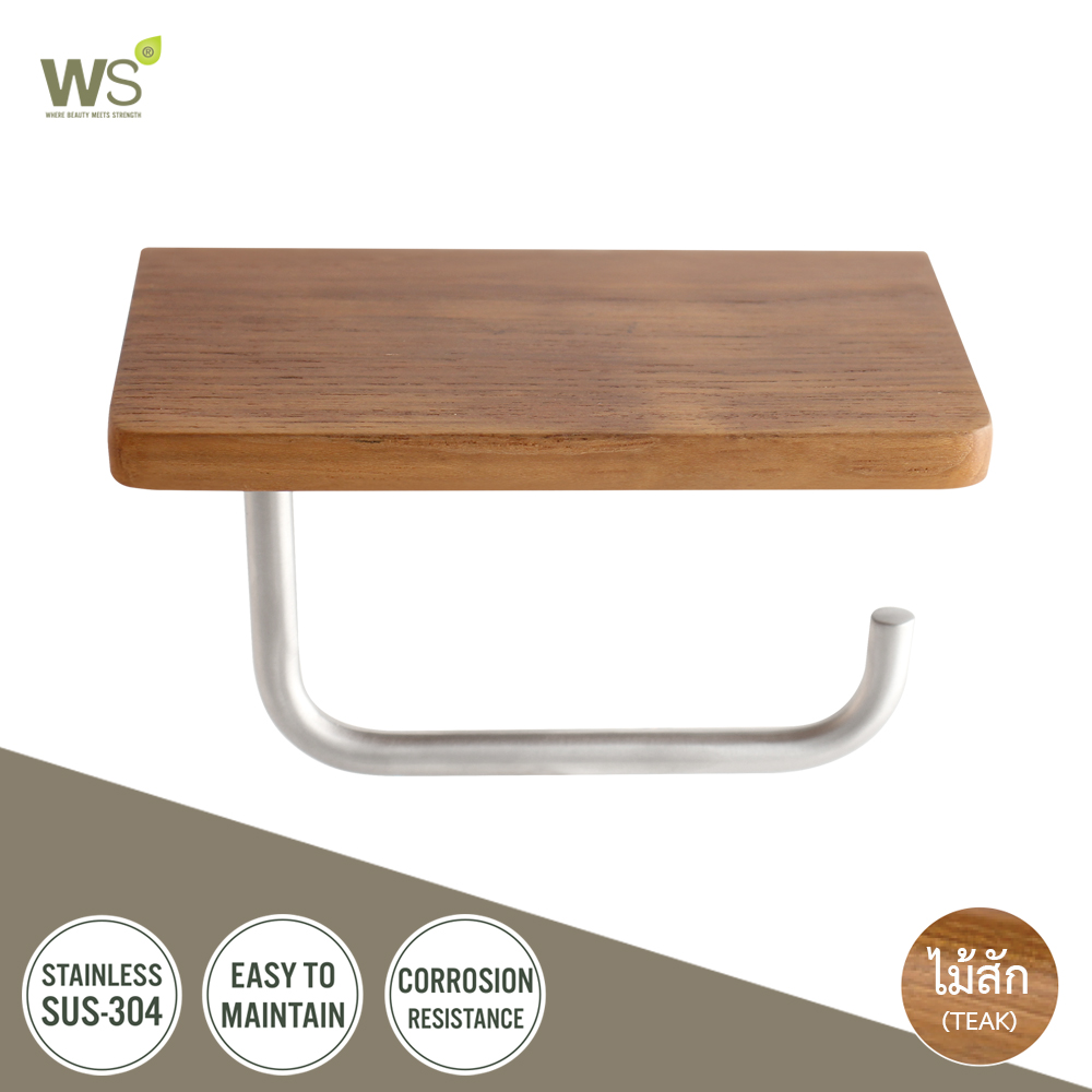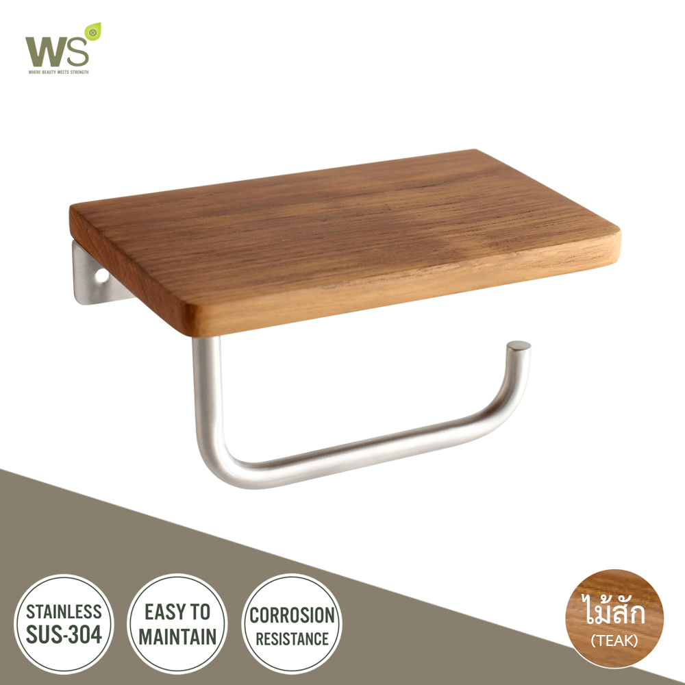 ที่ใส่กระดาษทิชชู่สแตนเลส แป้นไม้สัก รุ่นคอร์ร่า (KORRA) KR-6402T