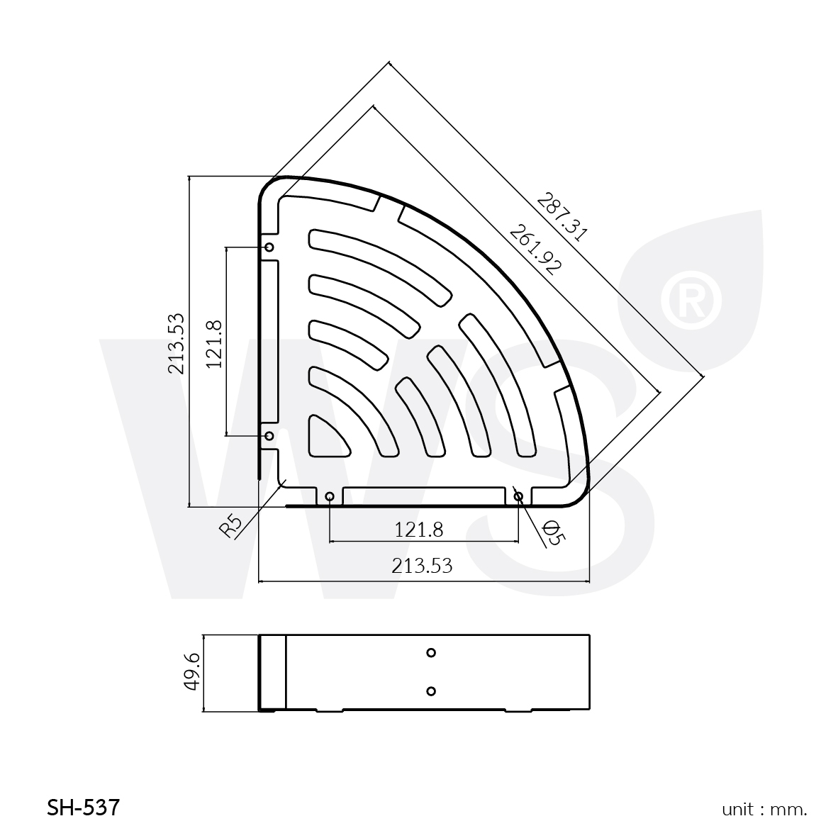 จำนวน ชั้นวางของในห้องน้ำสแตนเลส เข้ามุม ผิวเงา SH-537 ชิ้น