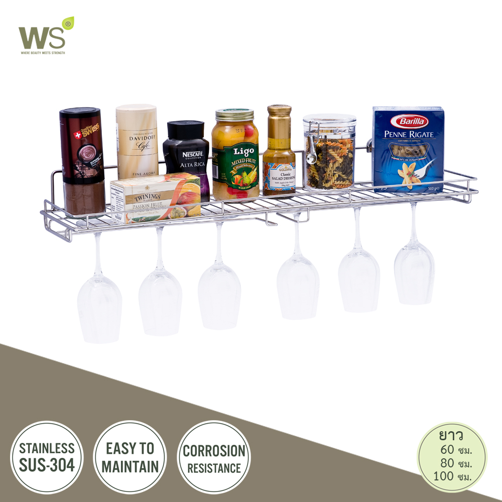 ที่คว่ำจานสแตนเลส พร้อมที่แขวนแก้วไวน์ แบบติดผนัง 60-100ซม. WR-4102