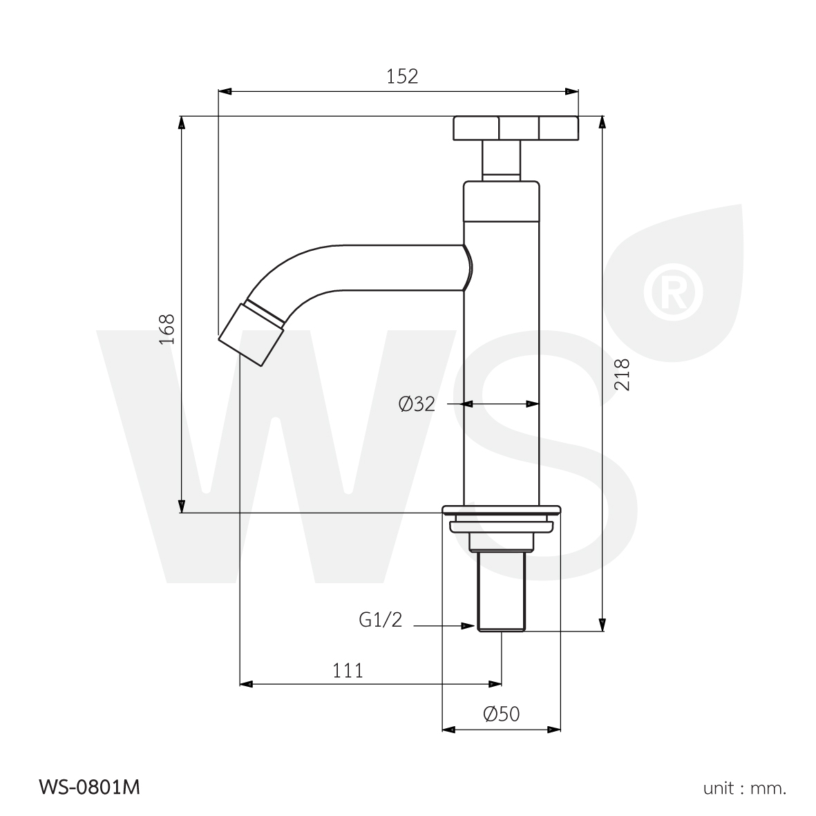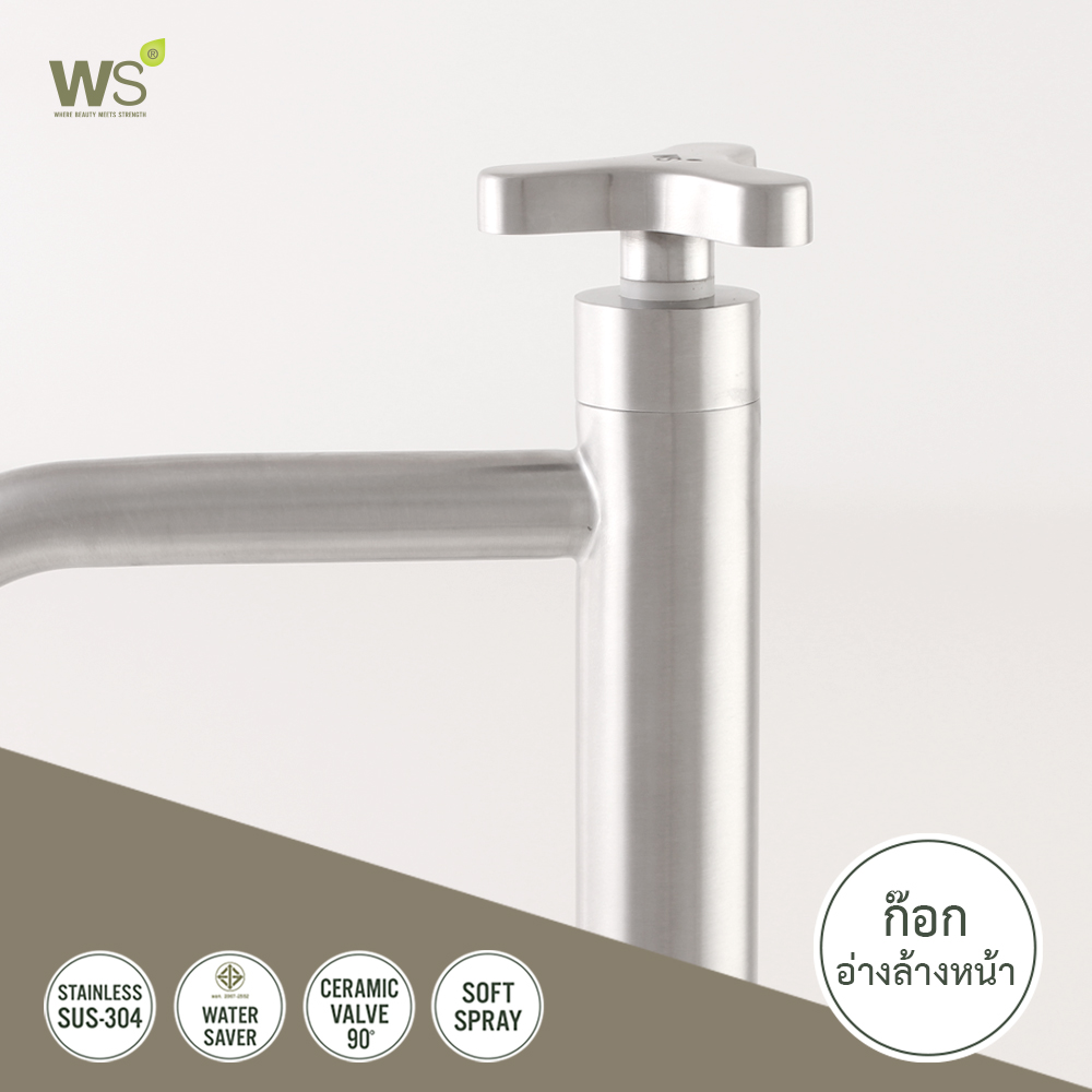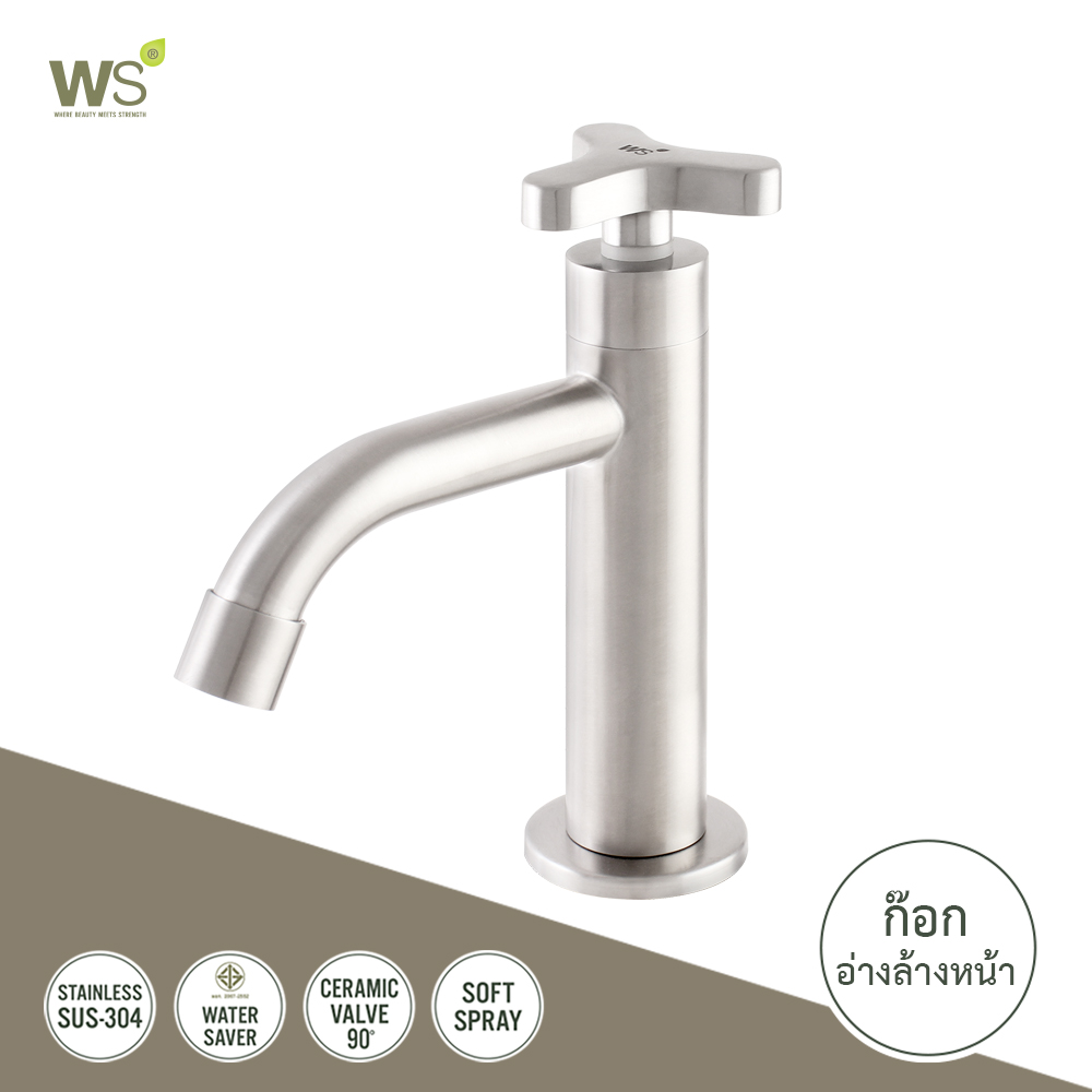 / ก๊อกอ่างล้างหน้าเดี่ยวสแตนเลส รุ่นทรีโอ้ WS-0801M