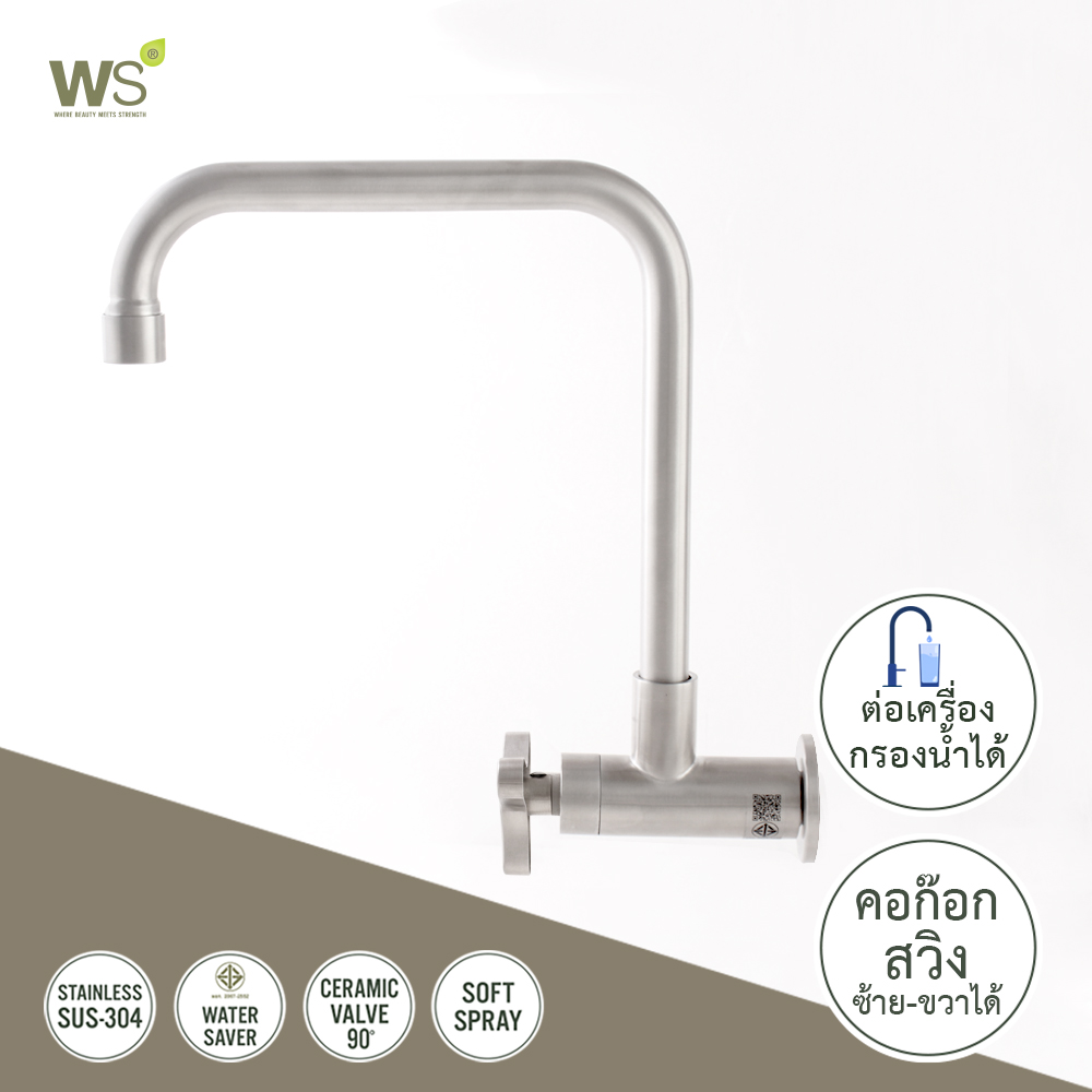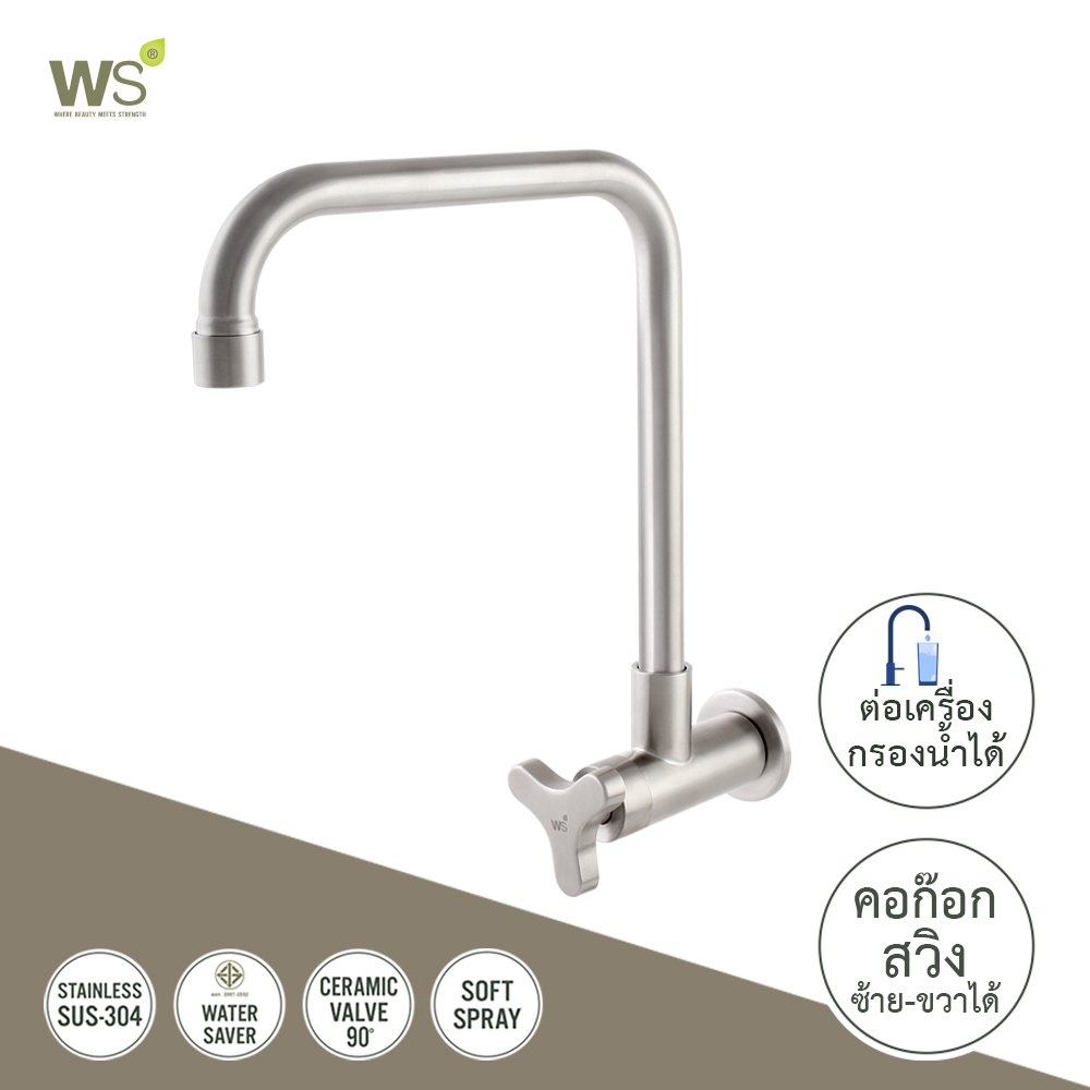 ก๊อกน้ำสแตนเลส ก๊อกซิงค์ ก๊อกอ่างล้างจาน แบบติดผนัง รุ่นทรีโอ้ (TRIO) WS-0832L