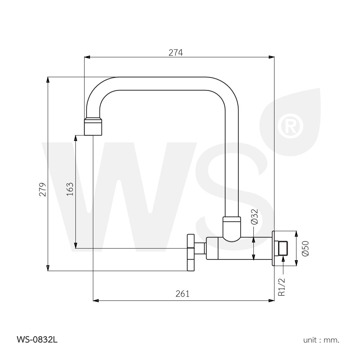ก๊อกซิงค์เดี่ยว แบบติดผนัง คอ L รุ่นทรีโอ้ WS-0832L