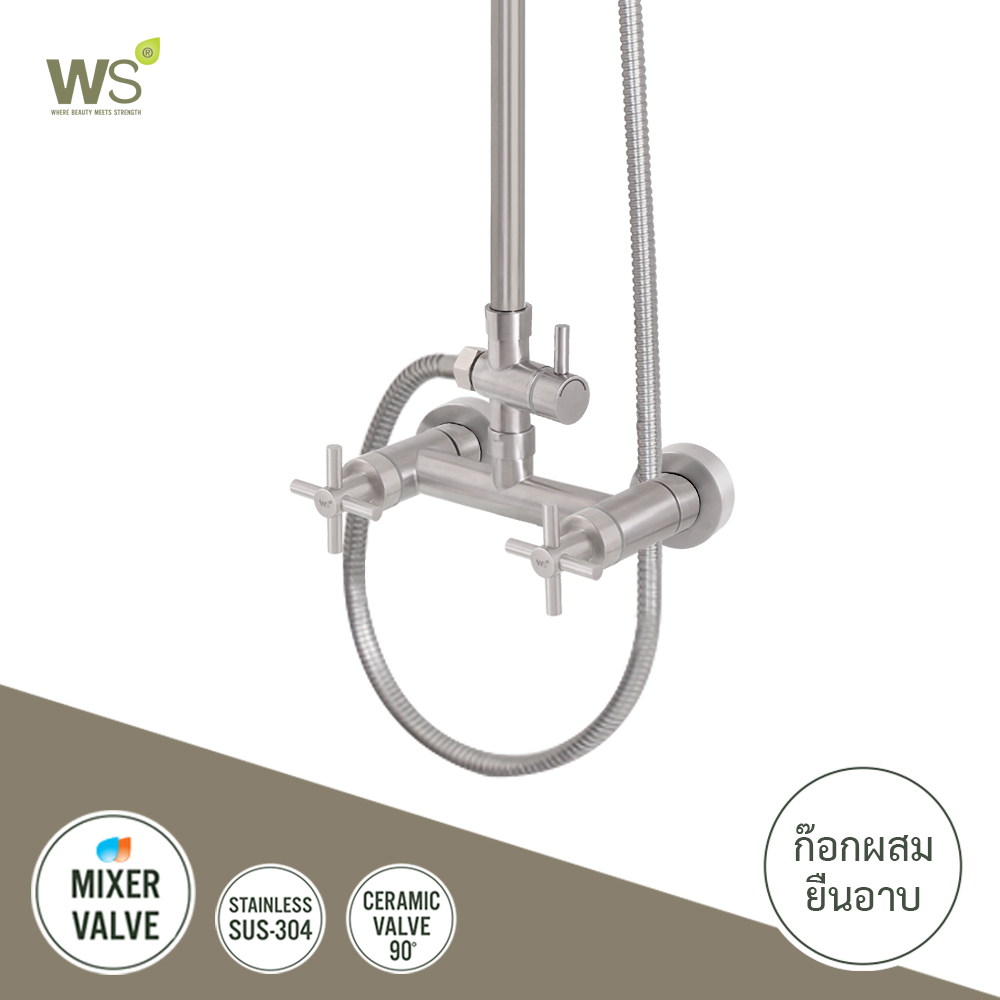 ก๊อกผสมยืนอาบ สแตนเลส ผิวแฮร์ไลน์ รุ่นพลัส (PLUS) WS-1812U
