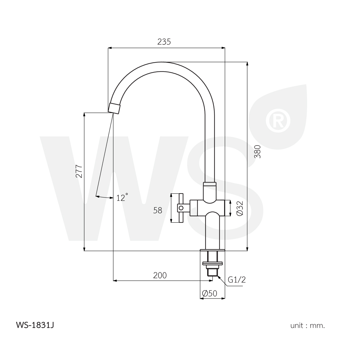 / ก๊อกซิงค์เดี่ยว แบบตั้งพื้น คอ J รุ่นพลัส WS-1831J