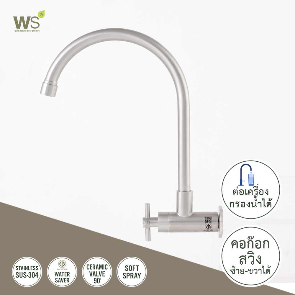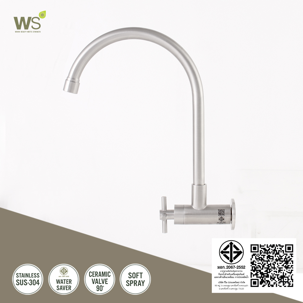 ก๊อกน้ำสแตนเลส ก๊อกซิงค์ ก๊อกอ่างล้างจาน แบบติดผนัง รุ่นพลัส (PLUS) WS-1832J