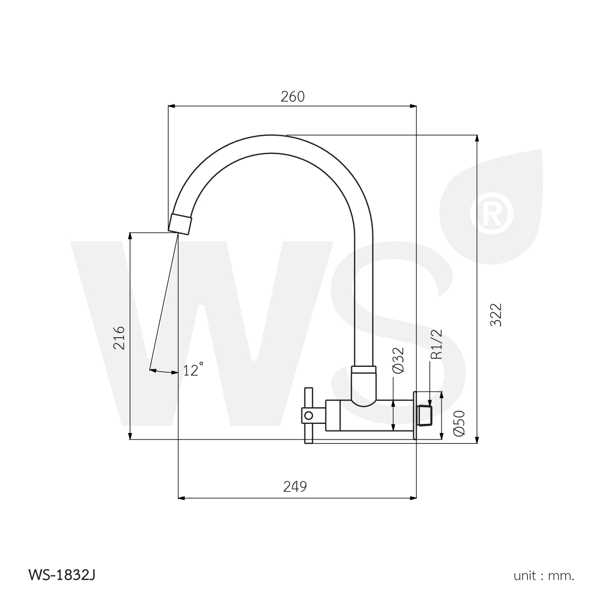 / ก๊อกซิงค์เดี่ยว แบบติดผนัง คอ J รุ่นพลัส WS-1832J